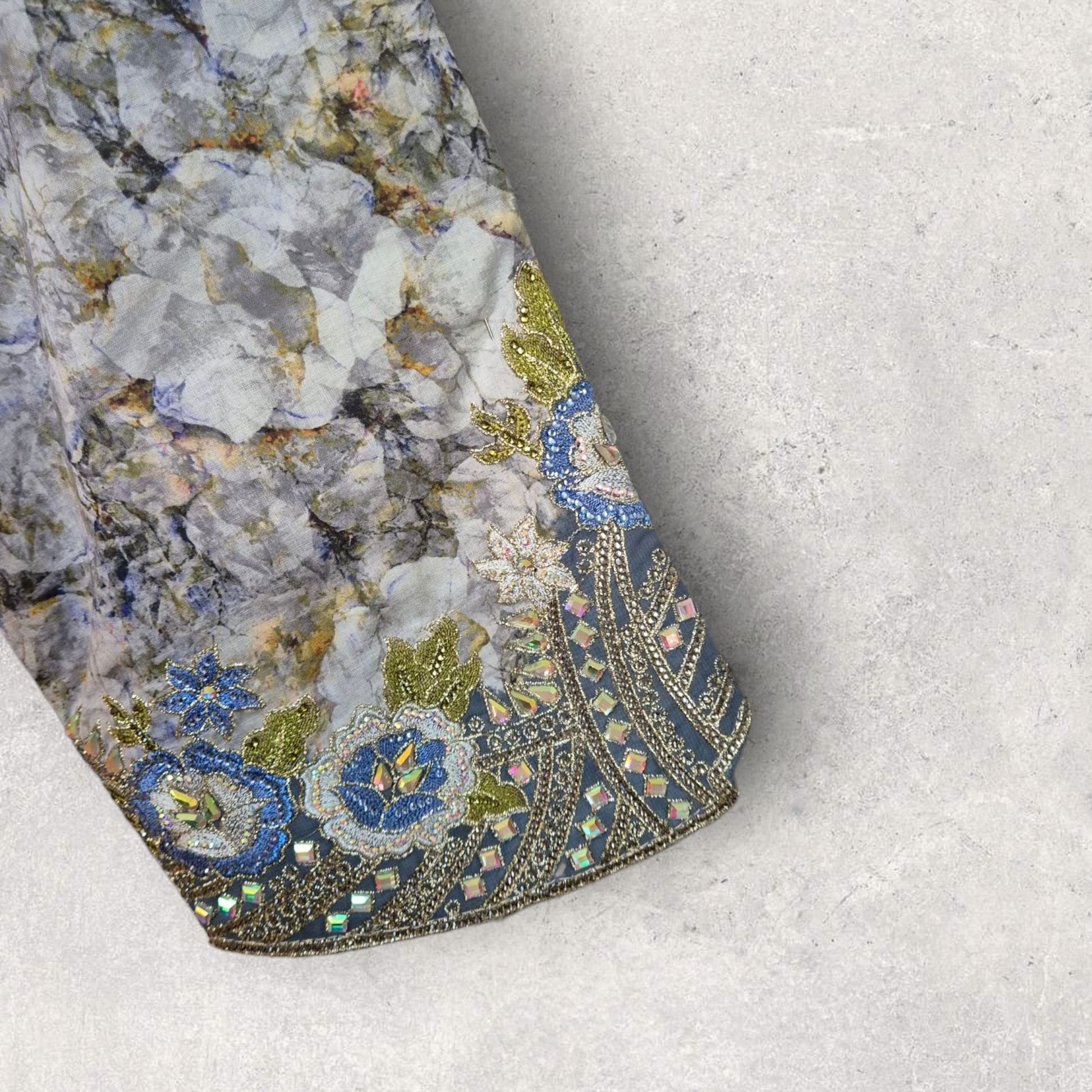 Tailored in the Emirates and pre-shrunk for easy wear, Stone Meadow carries the spirit of nature in every thread. Slight differences in embroidery or sparkle are part of its handmade charm — no two meadows are quite the same.